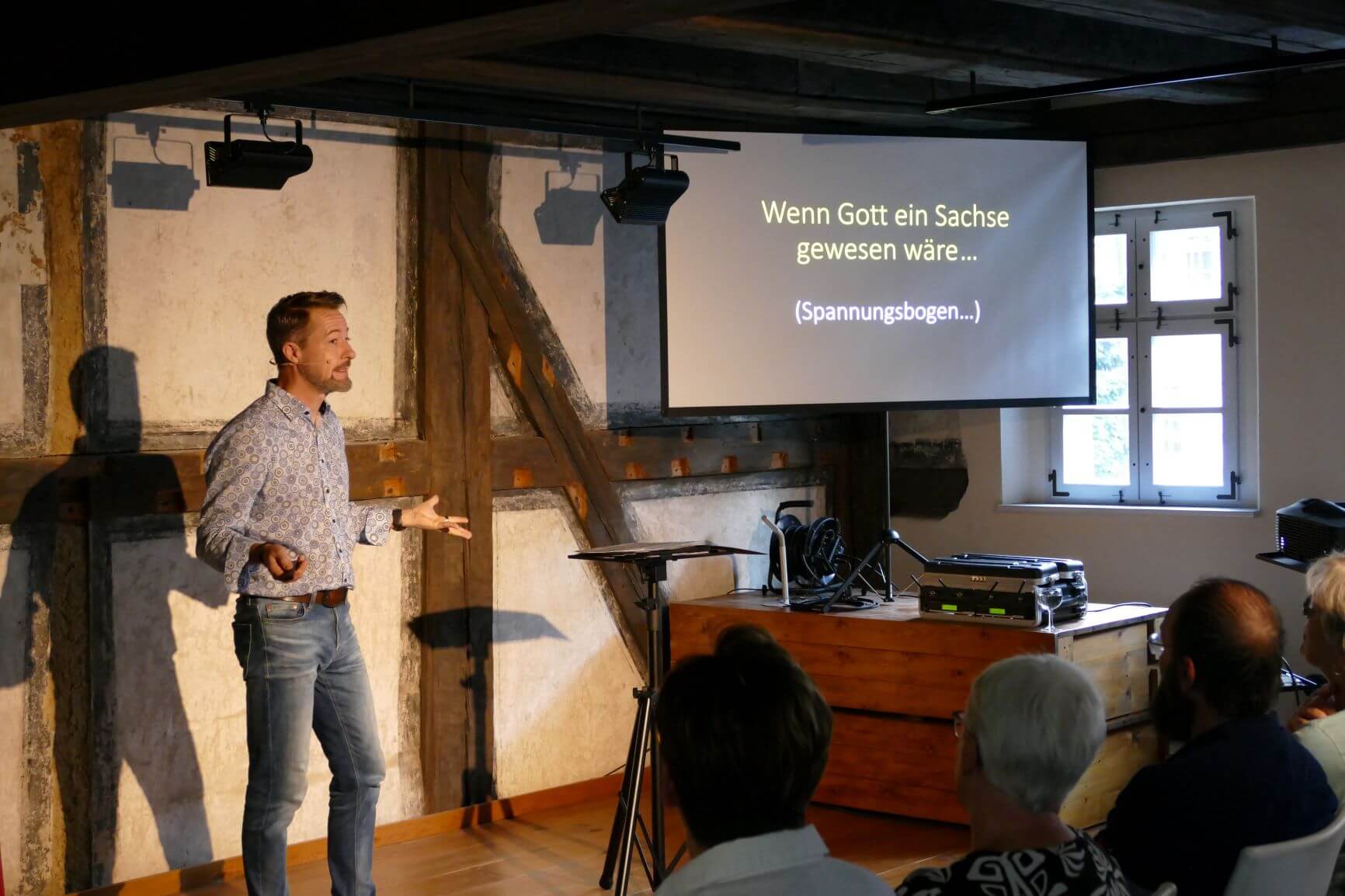 Privates Video (…mit freundlicher Genehmigung des Zuhöreres) zur Open Air-Lesung 2021 in der „Buchwartehalle Bahretal“ mit > 70 amüsierten Zuhörern.